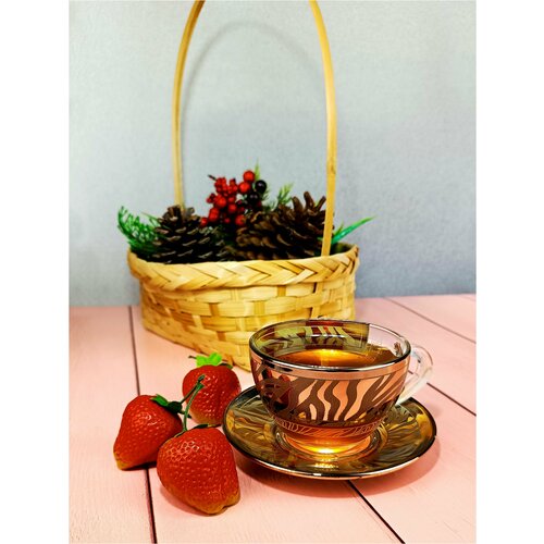 Подарочный набор турецких стаканов для чая / кофе, Армуды с алмазной гравировкой PROMSIZ масверк / 125 мл, 6 шт.
