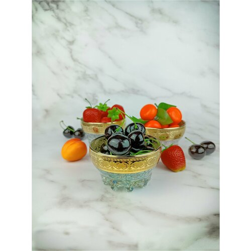зеленый, бесцветныйНабор круглых стеклянных салатников изготовленных из высококачественного стекла, декорированного узором.