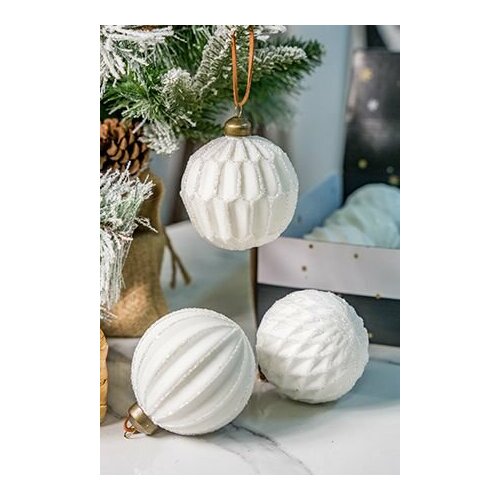 Набор стеклянных шаров сплендор блан, белый, 8 см, 12 шт, Winter Deco 19039-23026-W