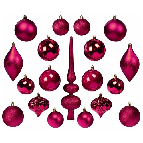 Набор ёлочных украшений "Блестящие традиции", пластик, бордовый, 6-13 см (19 шт.), Koopman International