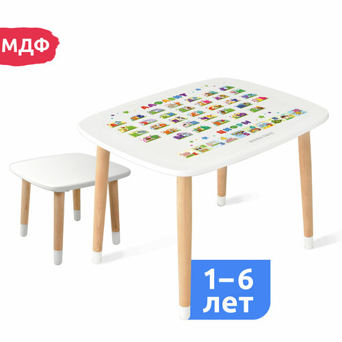 Детский стол и стул из дерева MEGA TOYS Алфавит комплект мебели в детскую комнату деревянный