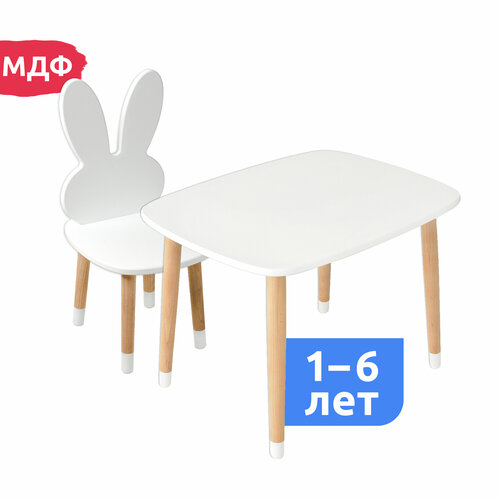 Детский стол и стул из дерева MEGA TOYS Кролик комплект мебели в детскую комнату деревянный