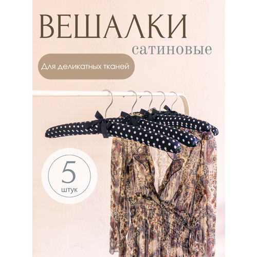 Вешалка для одежды Homy Mood 5шт, набор плечиков р-р 38.5 см, комплект вешалок для деликатных тканей цвет черный горох