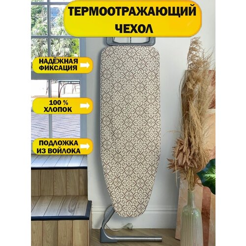 Чехол для гладильной доски с поролоном, универсальный, антипригарный и термостойкий, 122х42, Бежевый бибигон