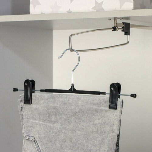 Набор вешалок для брюк и юбок с зажимами, 10 шт, 32х13,5 см, цвет чёрный