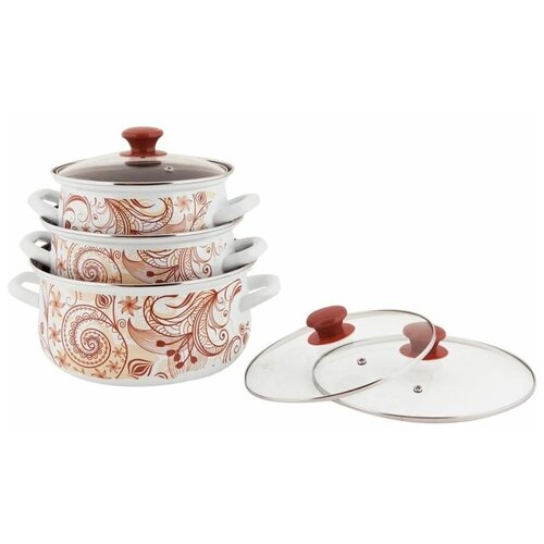 Набор кастрюль из эмалированной стали с объемами 2л; 3л; 4л; с красочными дизайнами, отлично подойдут под любой декор кухни. Данный набор станет радостью для ваших глаз. Посуда рассчитана на длительный срок эксплуатации. Она подходит для любых видов плит и посудомоечных машин. Прочный корпус из холоднокатаного стального проката гарантирует эффективную тепловую обработку пищи. Благодаря двойному слою эмалевого покрытия исключается проникновение в пищу оксидов металла. Покрытие инертно и устойчиво к пищевым кислотам, не вступает во взаимодействие с продуктами и не искажает их вкусовые качества.