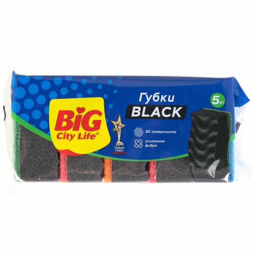 Губка для мытья посуды Big City Life Максима Black с волнистой поверхностью, 5 шт, 8.6х6.5х4.1 см