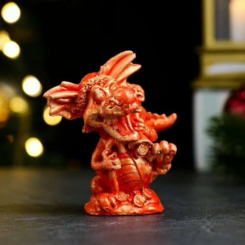 Фигура "Дракон с мешком подарков" красный с позолотой, 6х4х4см