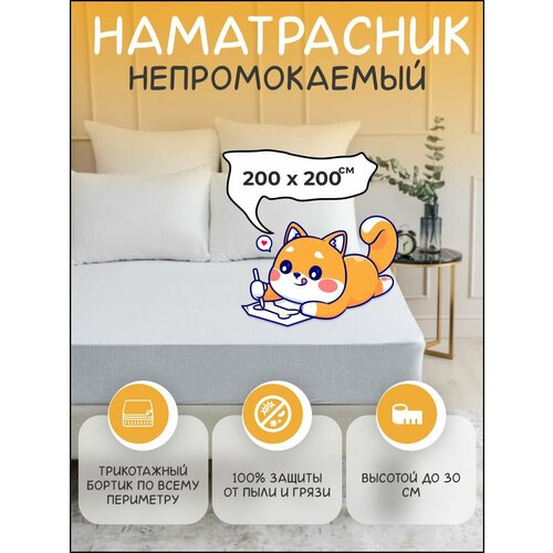 Наматрасник защитный ОТК Производство 200х200х30см непромокаемый с бортом 30 см и резинкой по всему периметру, чехол аквастоп, топер