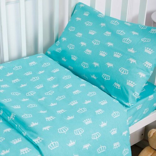 Атра Постельное бельё BABY Короны зелёный 112х147 см,60х120 см на резинке, 40х60 см, бязь 125 гр/м,100% хлопок