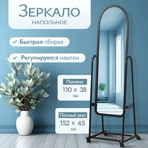 Зеркало напольное в полный рост. На колесиках. Среднее. Черное. 110х38 см