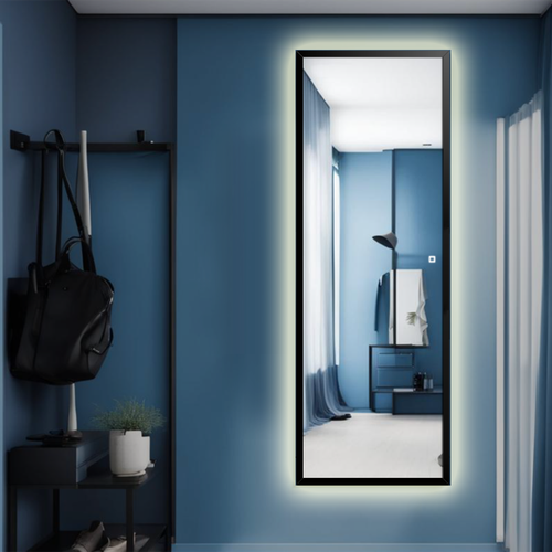 Зеркало настенное в полный рост Alias Квартал 160*50 в чёрной алюминиевой раме с холодной LED-подсветкой