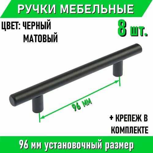 Мебельные ручки-рейлинг 96мм / 146мм, D12мм, черный матовый 8 шт. + крепеж, полнотелые литые