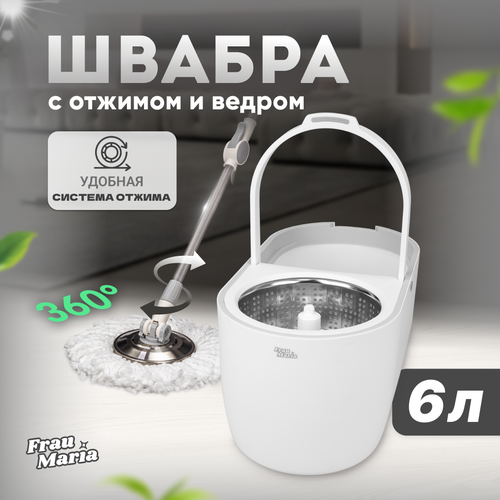 Швабра круглая с отжимом Frau Maria, ведро 10 л, 4 насадки