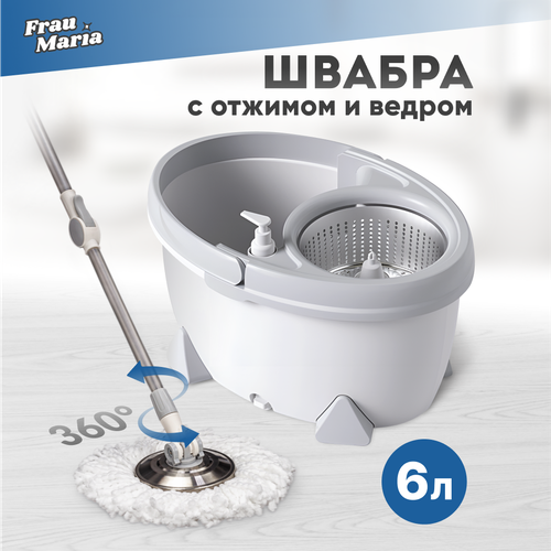 Швабра круглая вращающаяся для мытья полов в наборе с насадками и ведром с отжимом Frau Maria