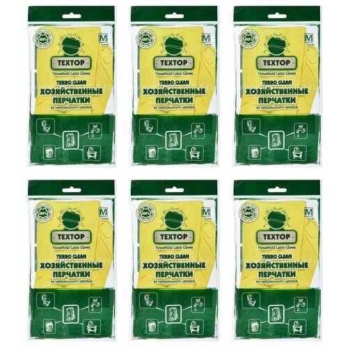 Textop Перчатки хозяйственные Turbo Clean, латекс, размер M, с напылением, 35 г, 6 уп
