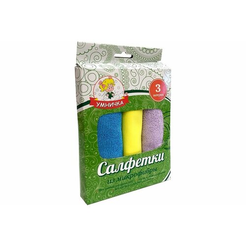 Умничка Салфетки 3шт набор в коробочке в асс. Микрофибра 30х30см SY-B-002