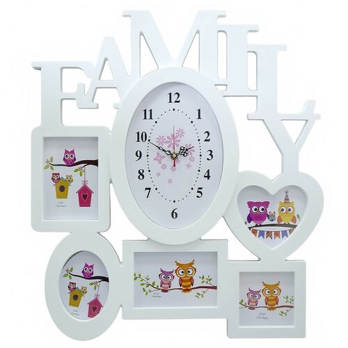 Настенные кварцевые часы LA MINOR с фоторамками белого цвета с арабскими цифрами