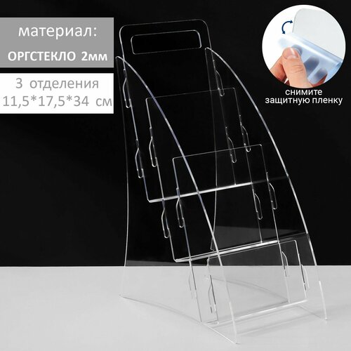 Диспенсер под еврофлаер 11,5*17,5*34 см, на 3 отделения, оргстекло 2 мм В защитной плёнке