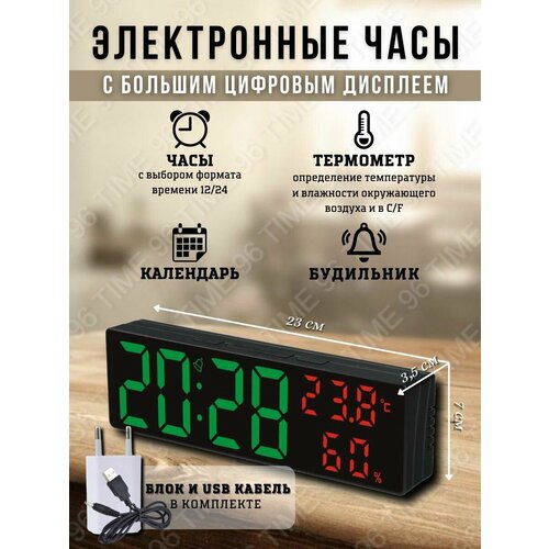 Настенные, настольные электронные часы календарь c пультом дистанционного управления, c термометром, влажностью, таймером, будильником.