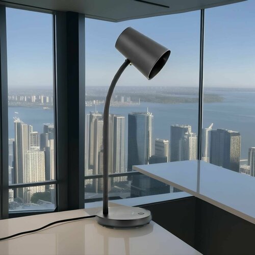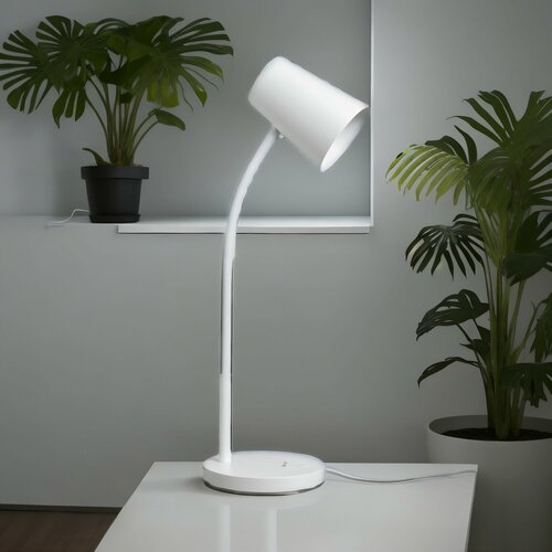 Модель оснащена устойчивой подставкой с плафоном, который можно регулировать по углу наклона и поворота. Гибкая стойка позволяет настроить светильник под индивидуальные потребности пользователя.