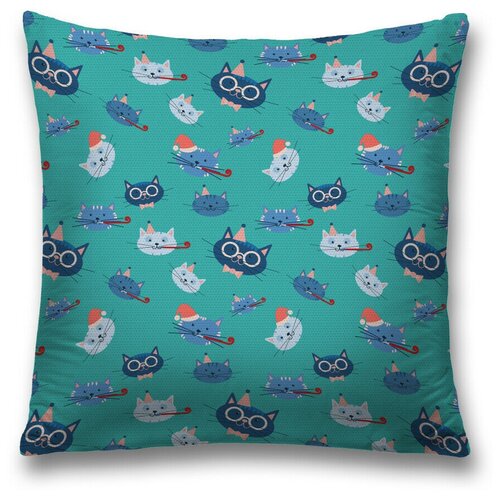 Наволочка декоративная на молнии, чехол на подушку JoyArty "Праздничные коты" 45х45 см