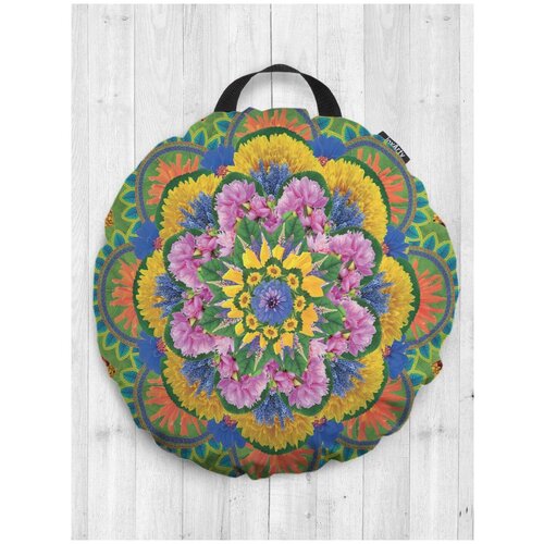 Декоративная подушка сидушка JoyArty "Цветочный фейерверк" на пол круглая, 52 см