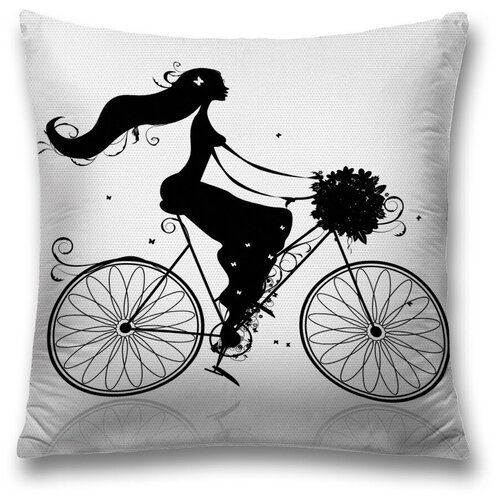 Наволочка декоративная на молнии, чехол на подушку JoyArty "Девушка на велосипеде" 45х45 см