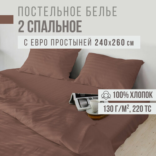 Постельное белье, 2 спальное, евро простыня, страйп-сатин VENTURA LIFE (50х70 см), Коричневый