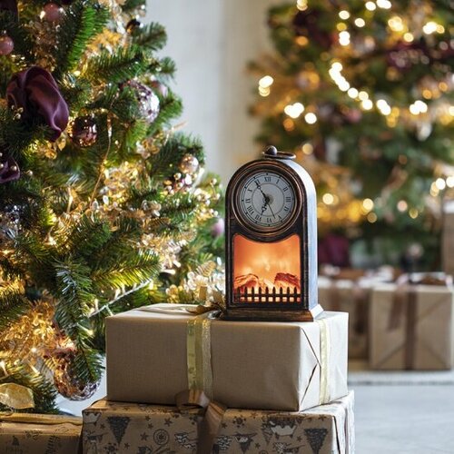 Светодиодный камин-светильник NEON-NIGHT "Старинные часы" с эффектом живого огня 25x15x12 см