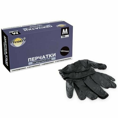 Aviora Перчатки нитриловые, неопудренные, одноразовые, черные, размер M, 50 пар