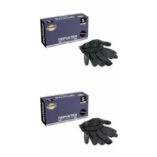 Aviora Перчатки нитриловые, неопудренные, одноразовые, черные, размер S, 50 пар, 2 уп