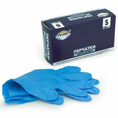 Aviora Перчатки нитриловые, неопудренные, одноразовые, голубые, размер S, 50 пар, 2 уп