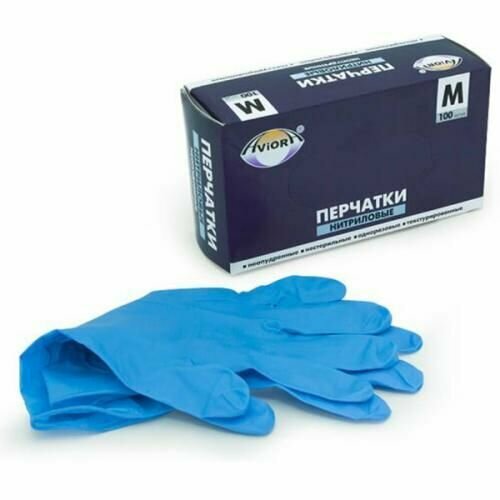 Aviora Перчатки нитриловые, неопудренные, одноразовые, голубые, размер M, 50 пар