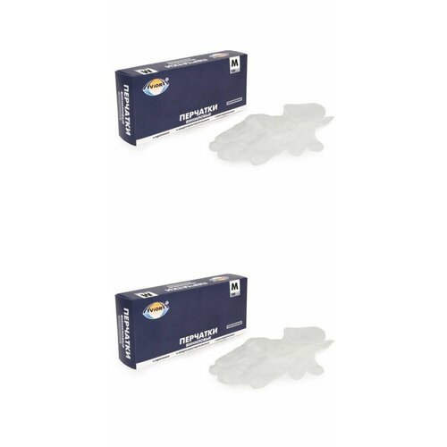 Aviora Перчатки виниловые, неопудренные, одноразовые, прозрачные, размер M, 50 пар, 2 уп