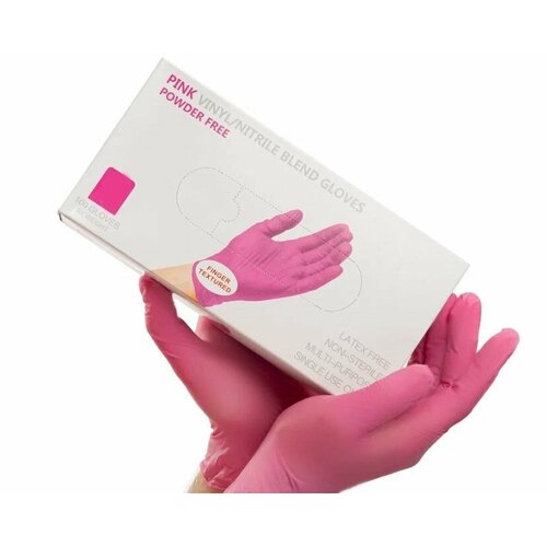 Перчатки WALLY PLASTIC Розовые Нитрил/Винил (50) пар, Размер M