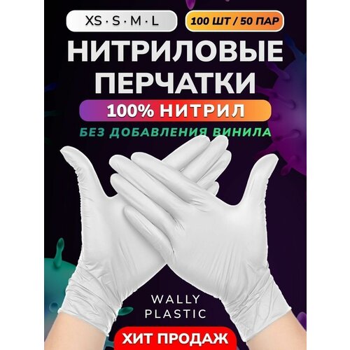Нитриловые перчатки - Wally plastic, 100 шт. (50 пар), одноразовые, неопудренные, текстурированные - Цвет Белый Размер L