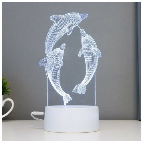 Светильник сенсорный "Дельфины" LED 7 цветов USB-от батареек белый