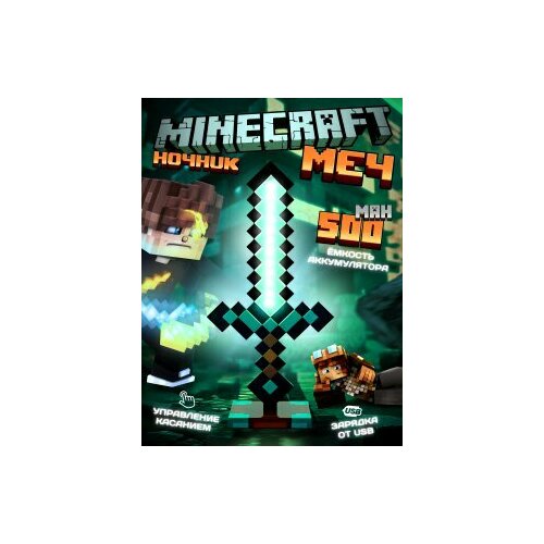 Светильник-ночник Minecraft "Алмазный меч", USB-зарядка, ABS-пластик, синий