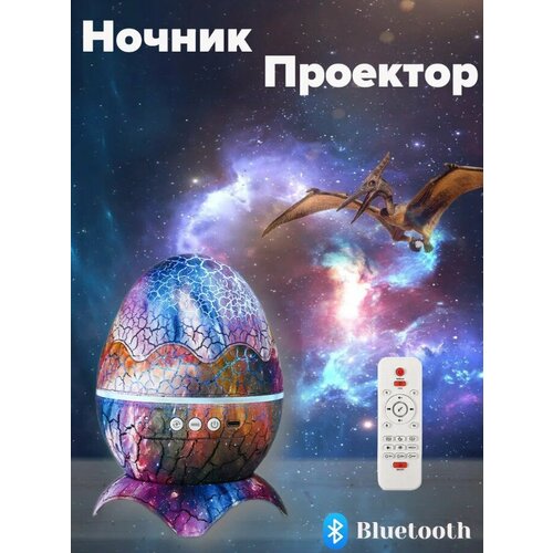 Ночник-проектор, музыкальная Bluetooth колонка "Яйцо Дракона", фиолетовый, синий