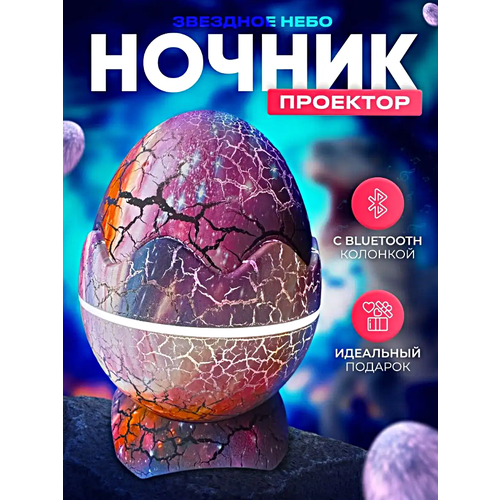 Ночник звездное небо Яйцо дракона, Ночник проектор звездного неба для дома, детской, спальни, Музыка, Пульт ДУ в комплекте, Фиолетовый