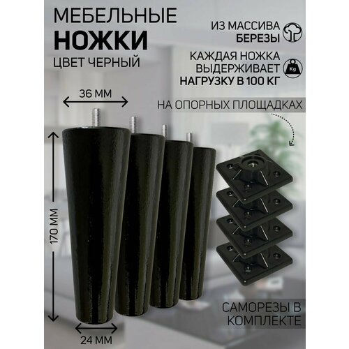 Мебельные опоры ножки 150*45 мм универсальные из массива березы черные для дивана / столика / тумбочек / шкафов / конусы / лофт / венге