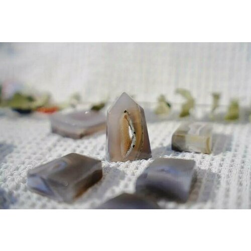 Серый Агат друза кристалл (4 угла) с 4-4.5 см./ Натуральный природный камень с мешочком.