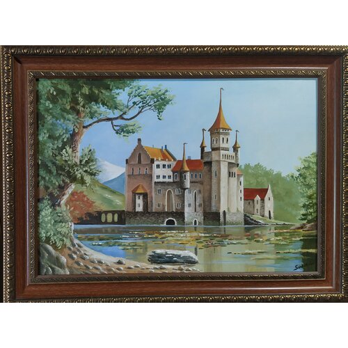 Пейзаж "Замок у пруда", картина маслом, холст 45*60 см, ручная работа, Соснина Татьяна.