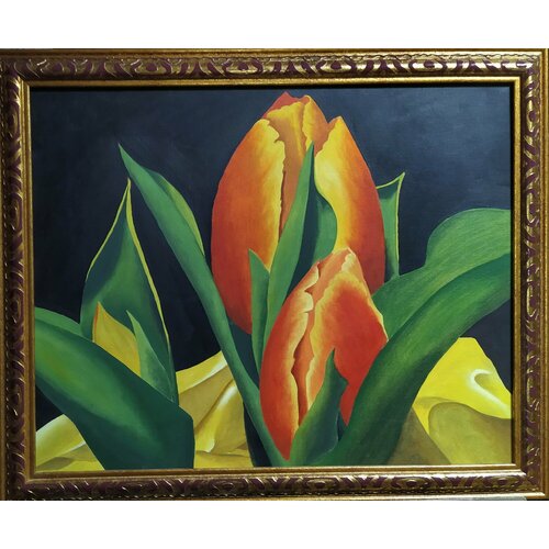Натюрморт "Тюльпаны на желтом", картина маслом, холст на картоне 48*58 см. ручная работа, Соснина Татьяна.