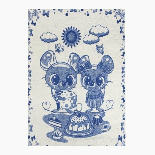 Одеяло байковое Мышки 100х140см, цвет синий 400г/м 100% хлопок, 1 шт.