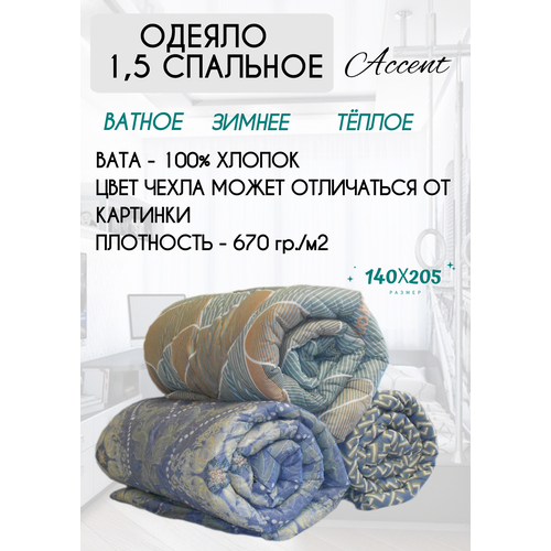 Одеяло ватное 100 % хлопок, 1,5 спальное, 140 х 205