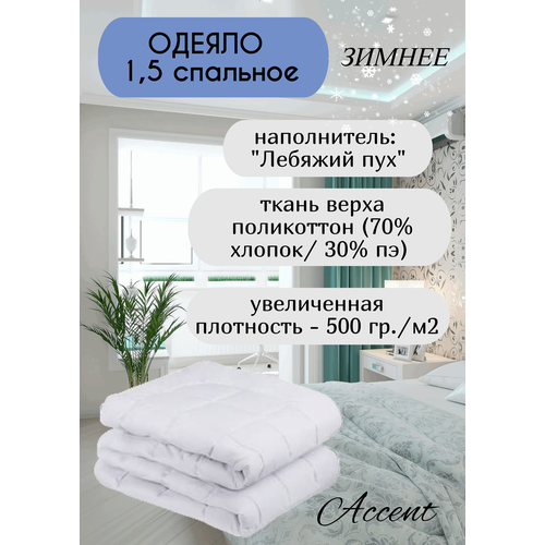 Одеяло 1,5 спальное зимнее "Лебяжий пух", поликоттон жаккард