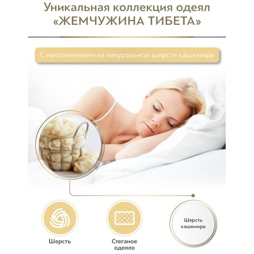 Одеяло Daily by T шерстяное Жемчужина Тибета, шерсть гималайской кашемирской козы 2-x спальный, 175x200, Всесезонное, с наполнителем Кашемир