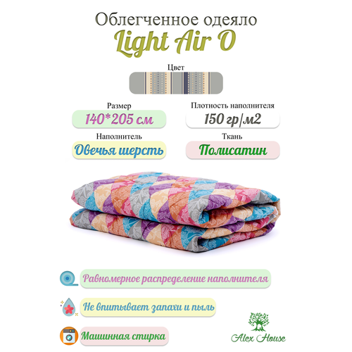 Облегченное одеяло Alex House Light Air O 140*205 Полисатин Овечья шерсть
